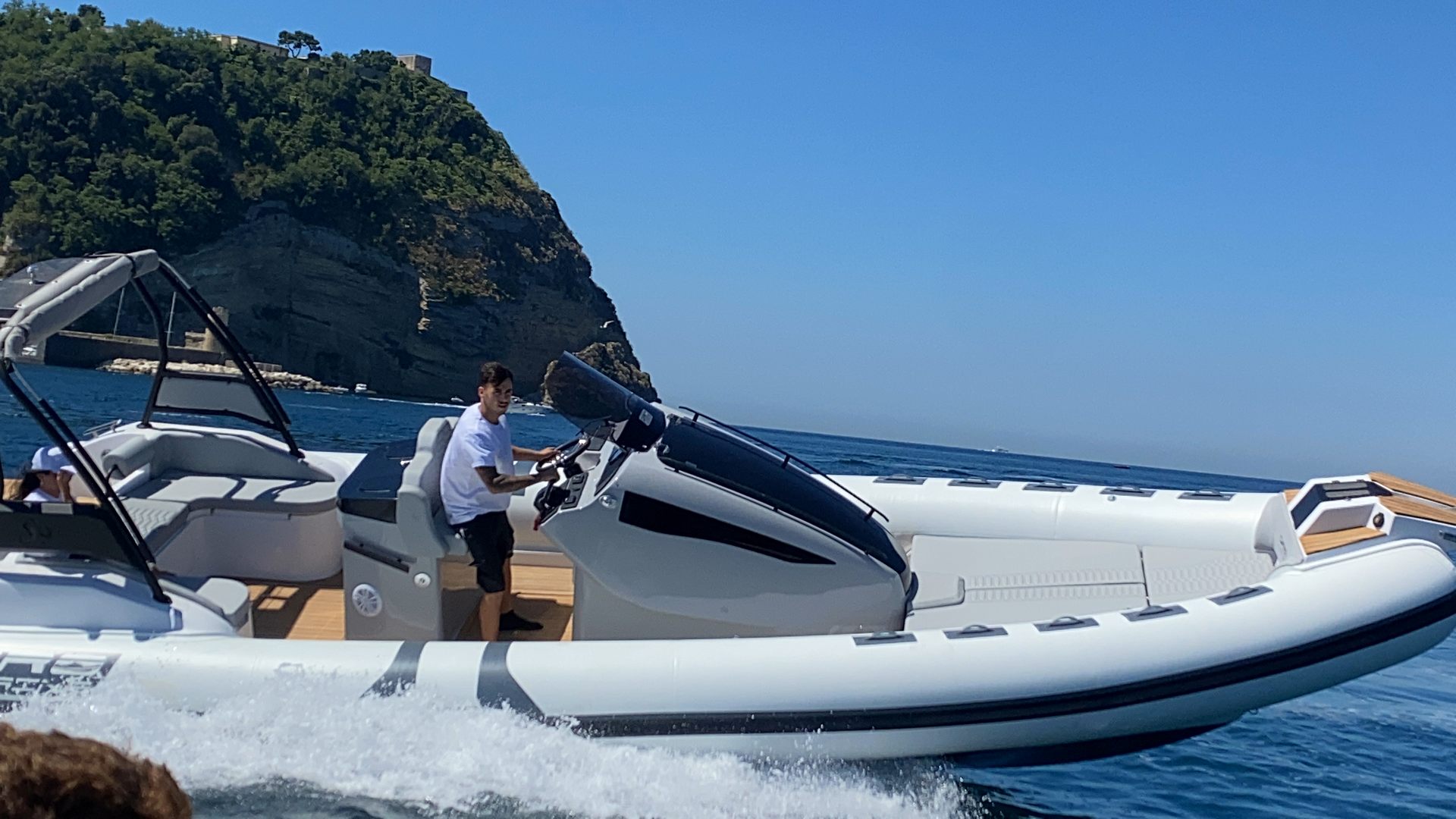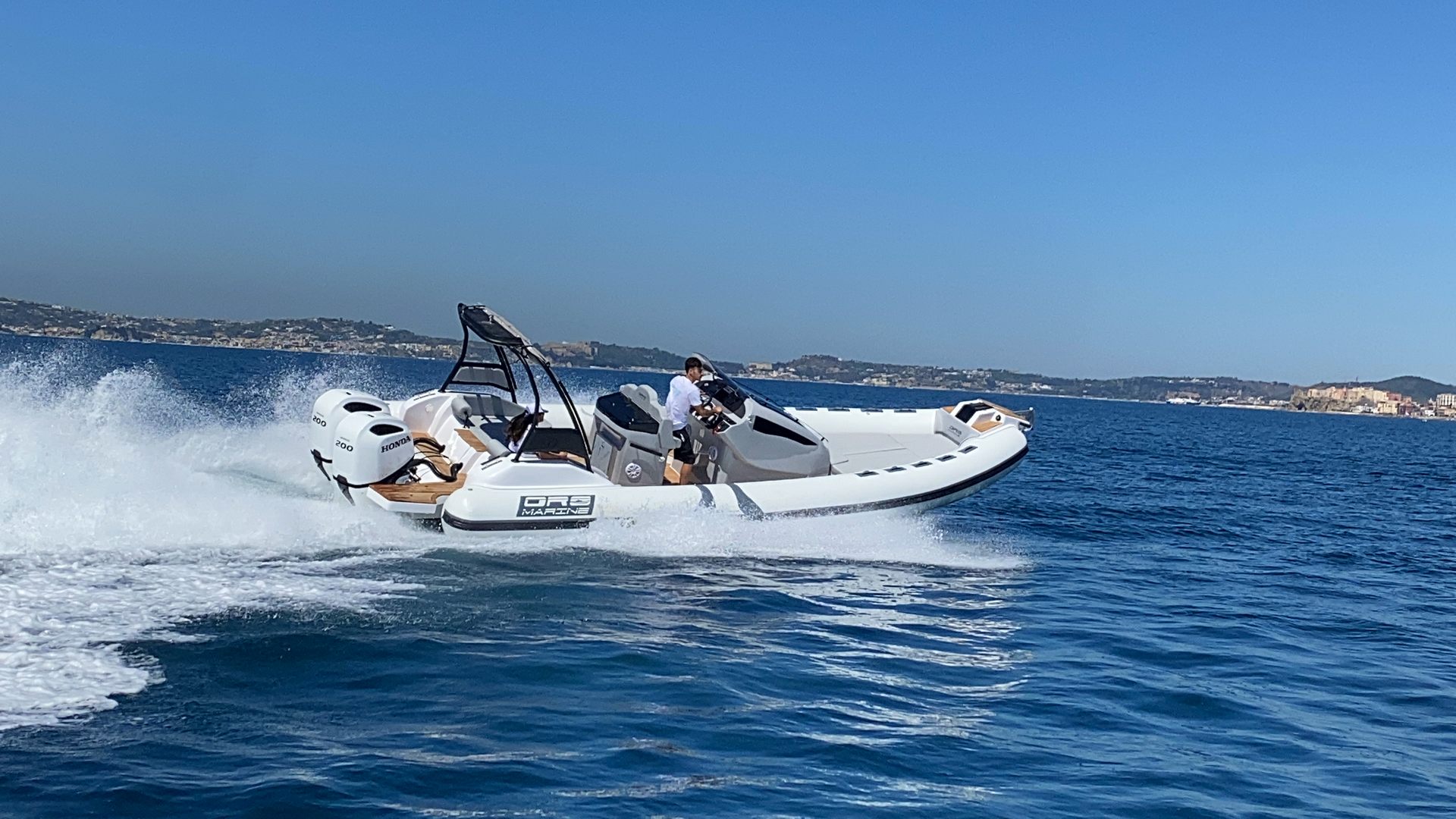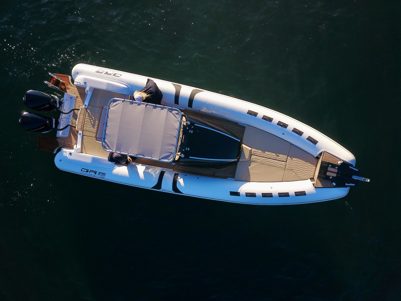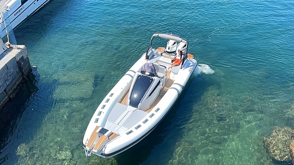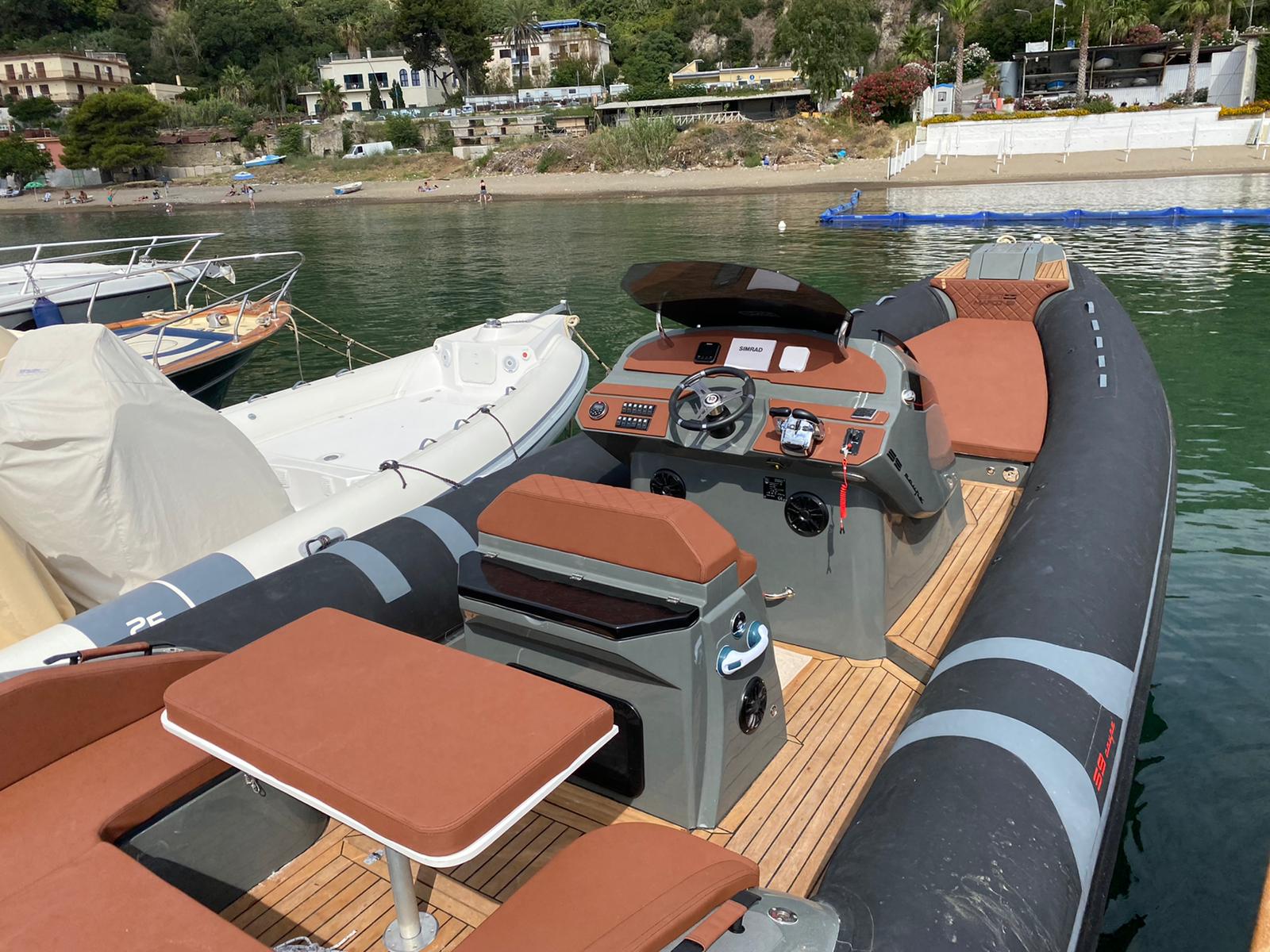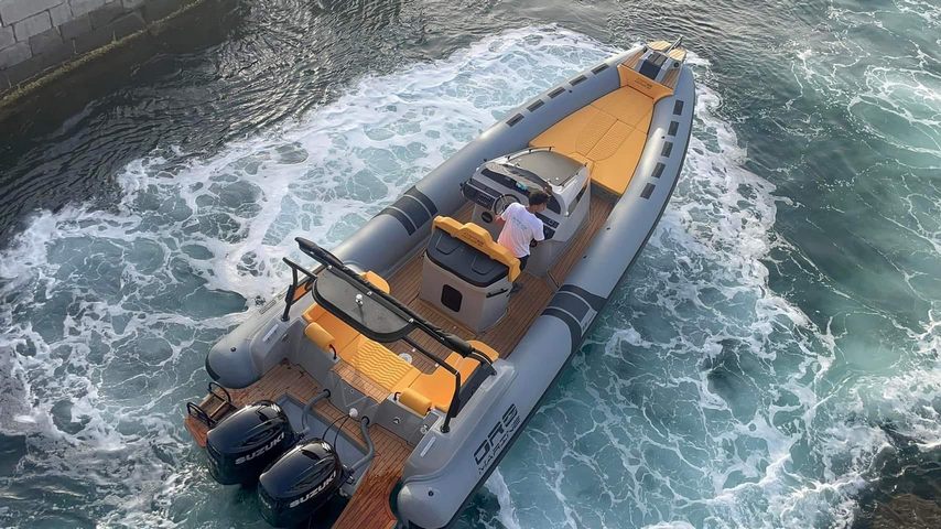 C’est un bateau pour de longs transferts en tout confort, qu’il soit assis sur les coussins de proue, qui font également office de solarium lorsqu’il est stationné en mer ou de lit en cas de camping nautique. La console intérieure est conçue pour devenir un véritable cabinet de toilette séparé et, si besoin, comprend également un lavabo.